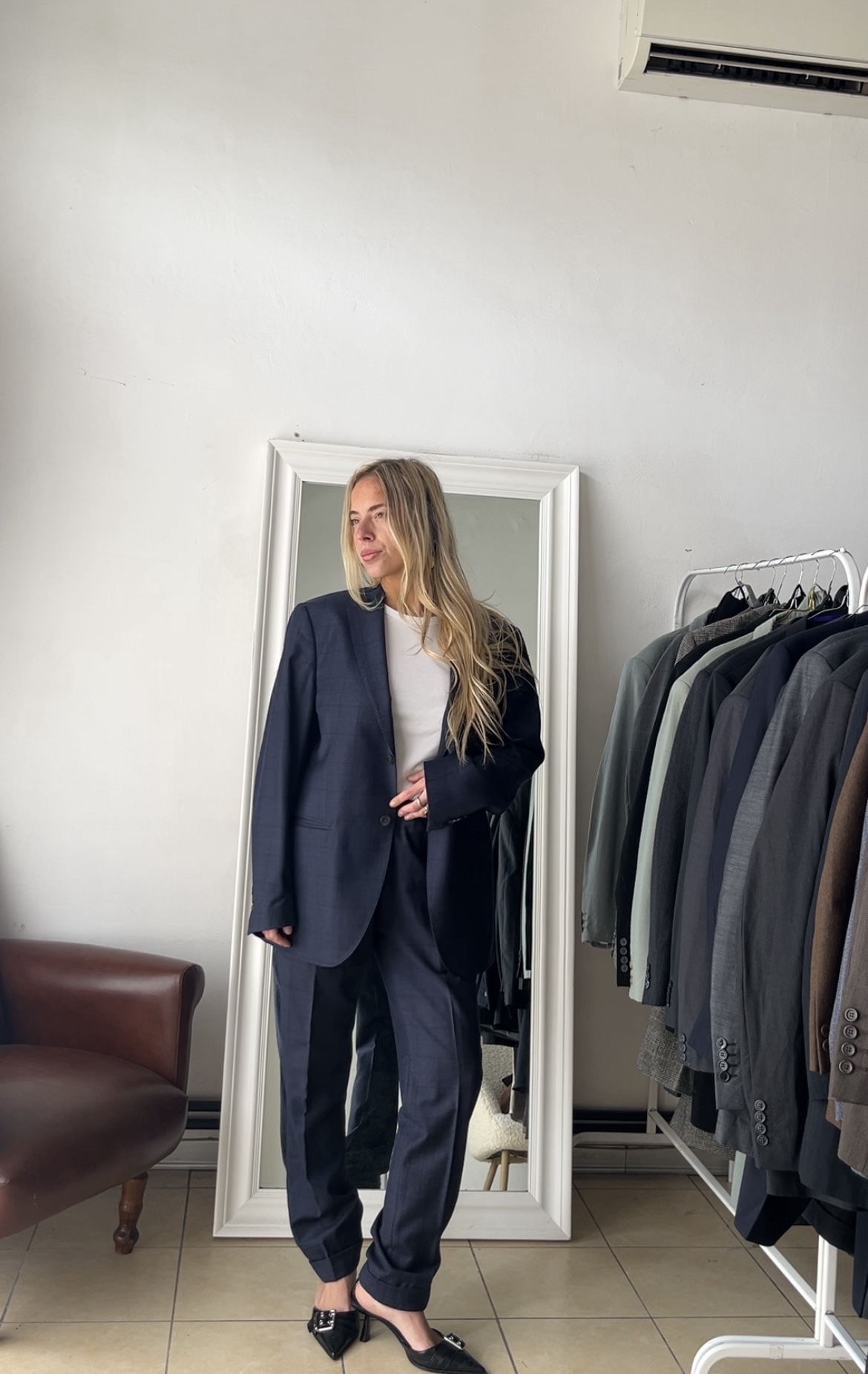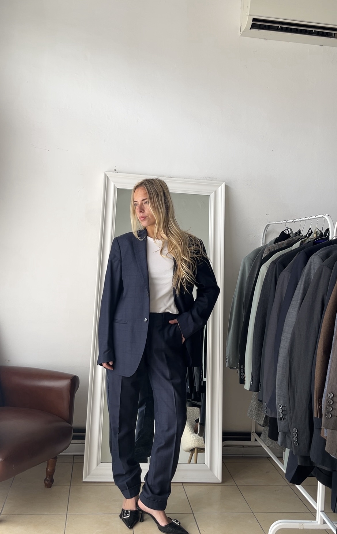 Completo slim gessato blu M