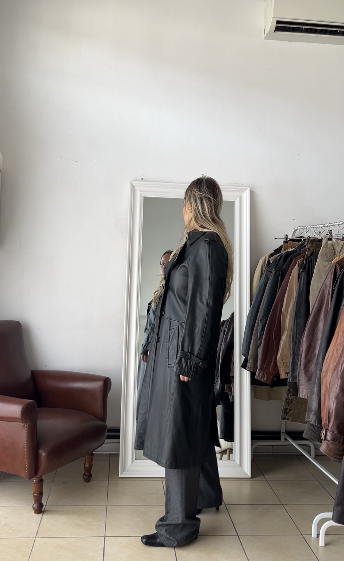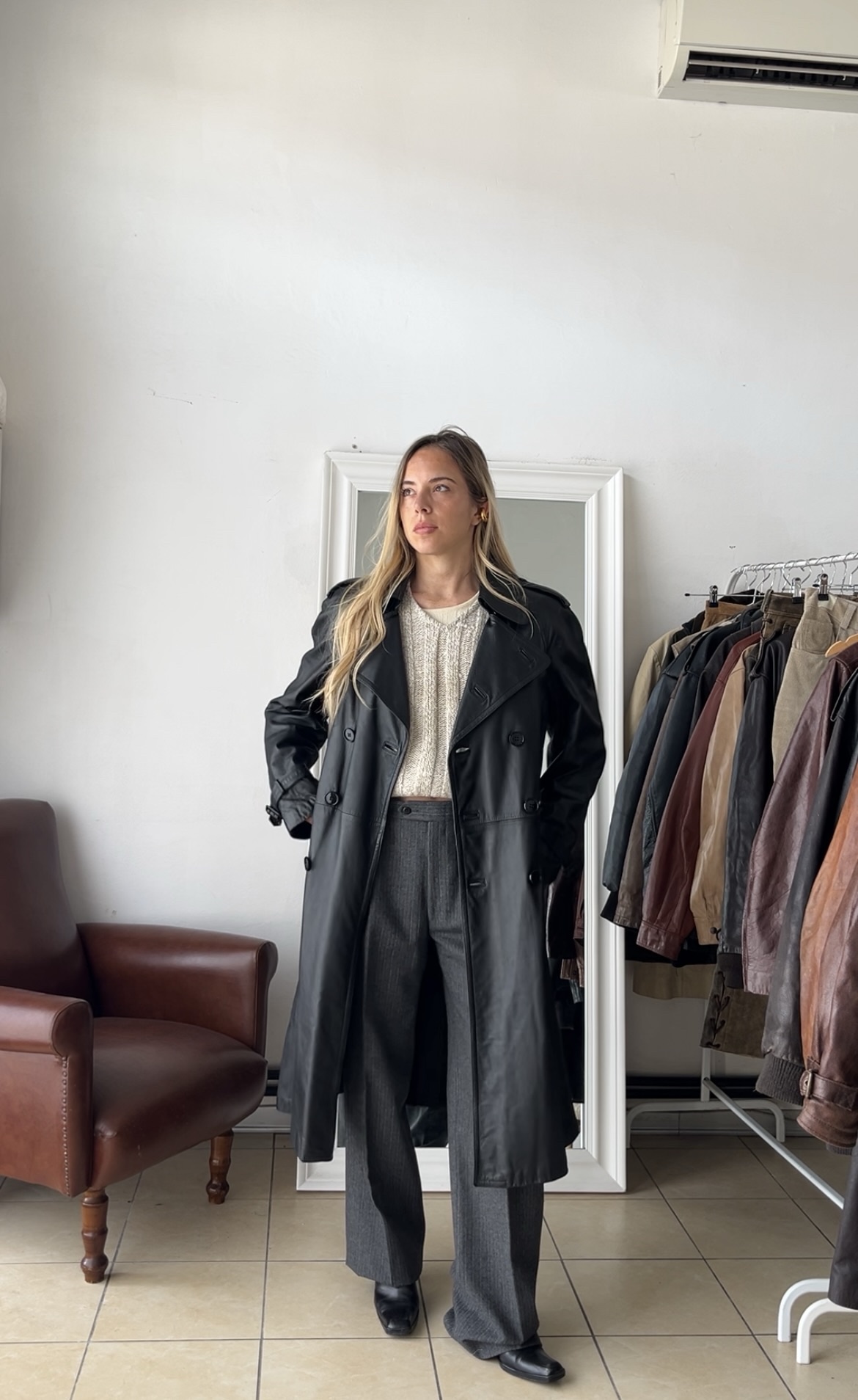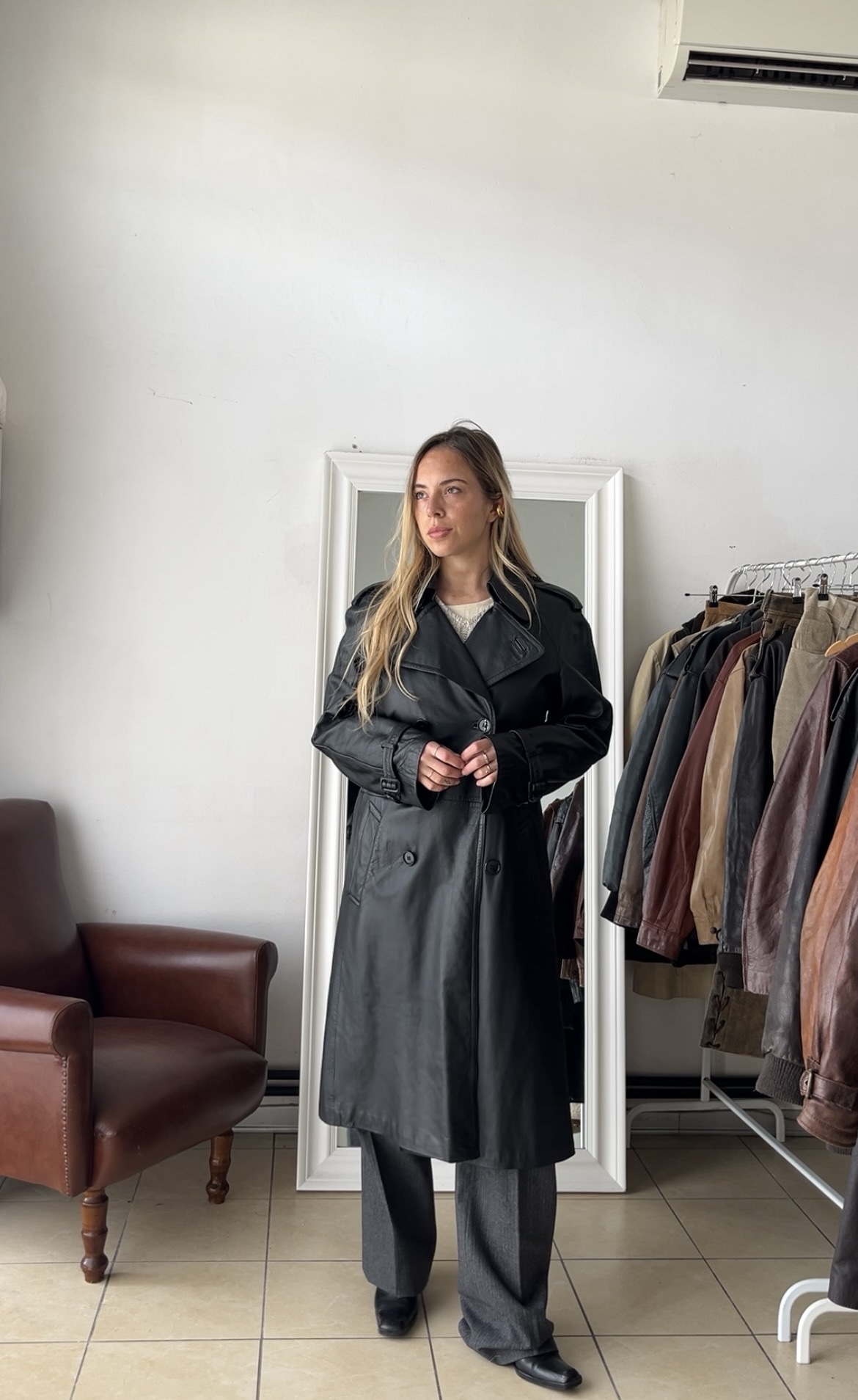 / Trench nero Vera pelle